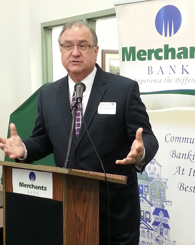 Mayor Panto speaks at Merchants Bank’s Grand Re-opening and Ribbon Cutting. He recognized the bank for being truly community-based through their volunteerism, philanthropy and using local vendors.