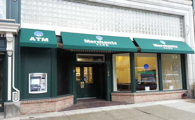 The branch is pictured along with newly installed awnings. A projecting sign will be soon be added as well.