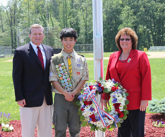Sam Miller spoke at the ceremony, expressing gratitude to our veterans, as the Scouts of Troop 74 raised the flag for the first time at the Memorial Day dedication. Boy Scout Troop 44, local residents, township officials and other supporters including State Representative Marsha Hahn and Congressmen Charlie Dent also attended the event. Paul Luongo also attended the flag-raising and was touched by the efforts of Sam and his fellow scouts: “Sam is a dedicated and driven young man. It was an honor to support this project.”