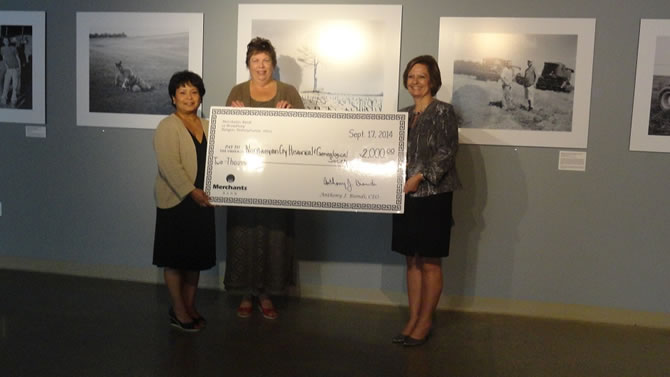 Caption: (l-r) Paula Kilpatrick, Branch Manager at Merchants Bank; Barbara Kowitz of Northampton Historical and Genealogical Society; and Sandee Kennedy, Vice President and Market Manager at Merchants Bank, stand in front of the Heart and Soil Exhibit at Sigal Museum. They are celebrating the Bank’s recent $2,000 donation in conjunction with the EITC Program. This is the fourth year that Merchants has made a donation to NHGS under the EITC program.